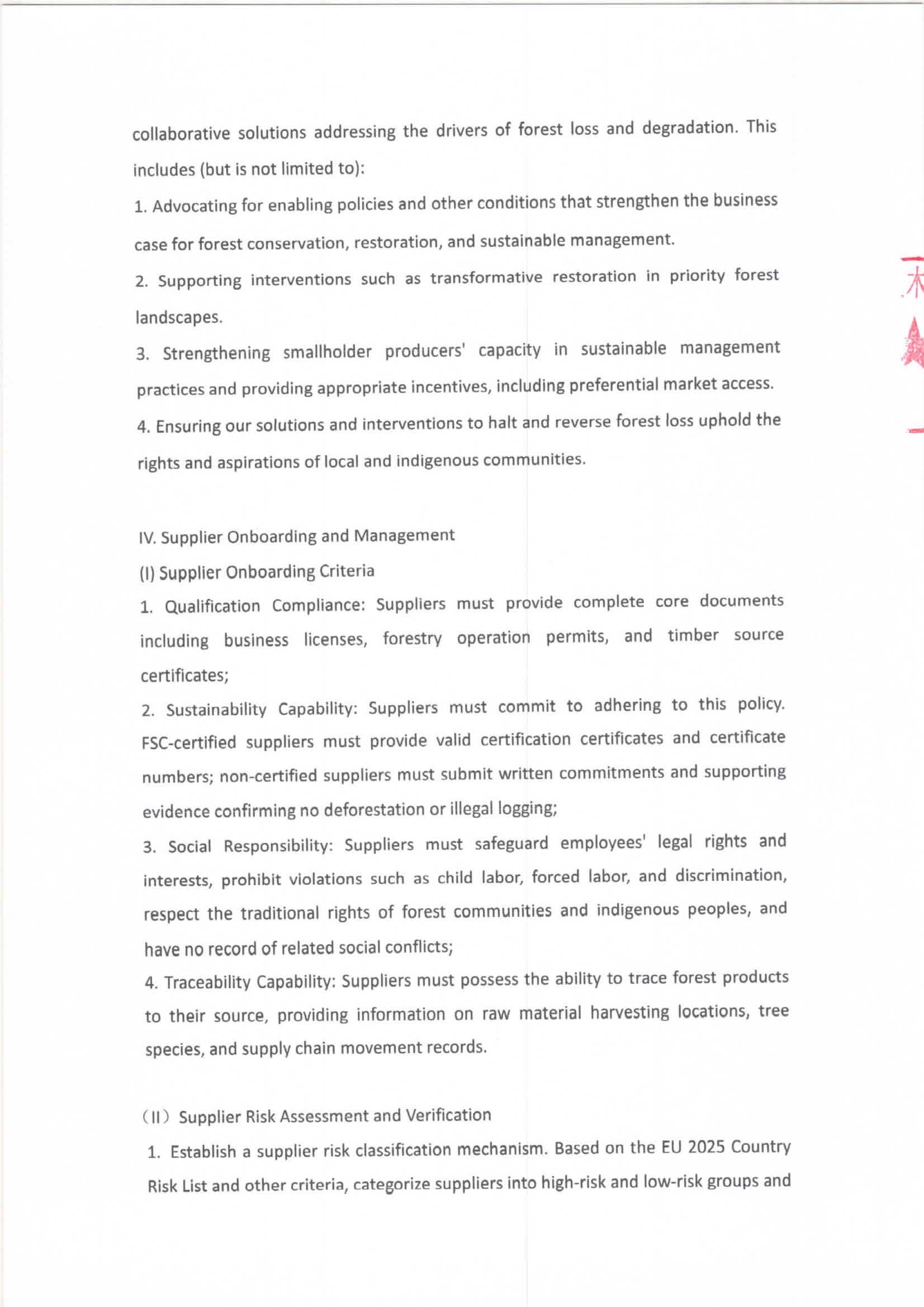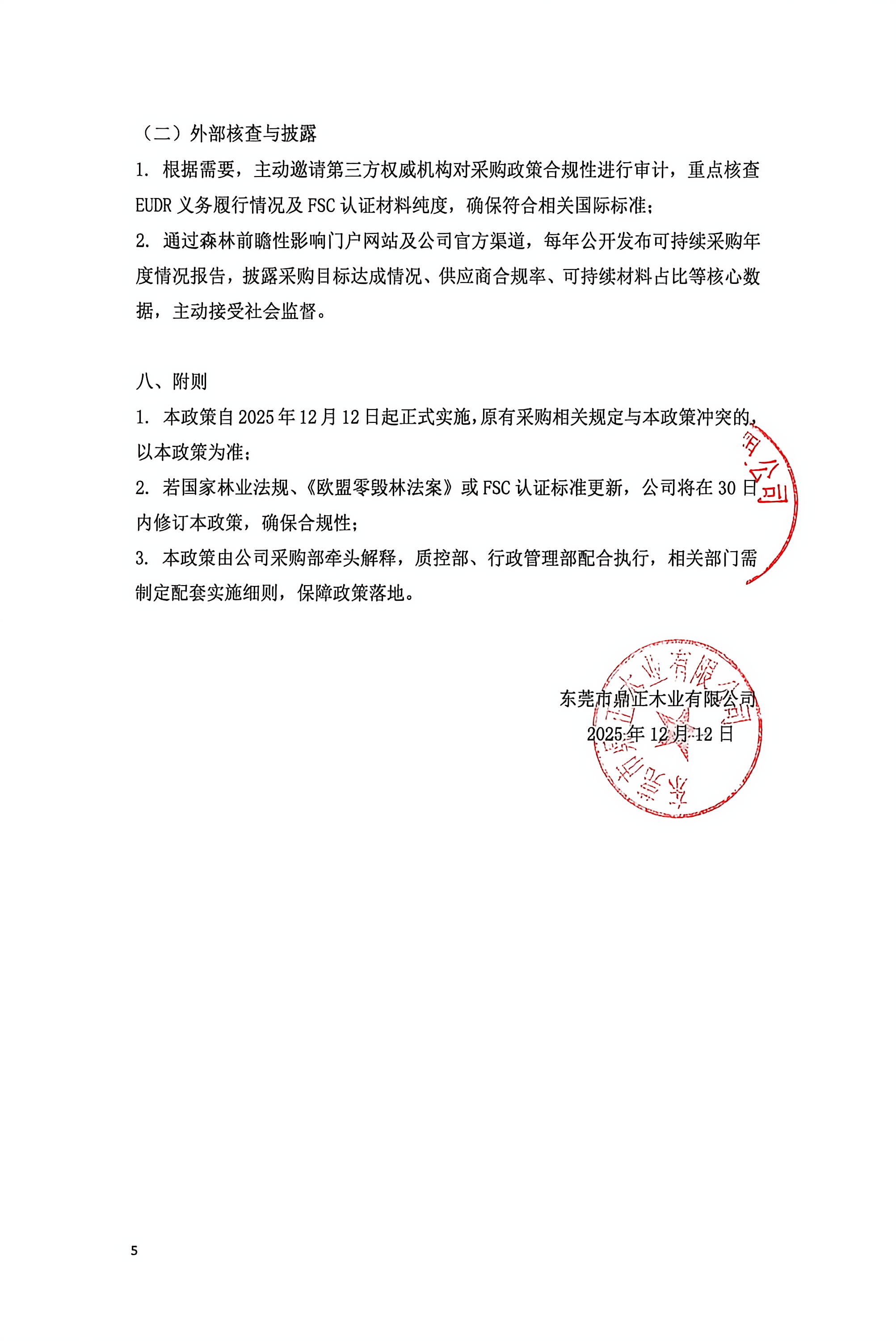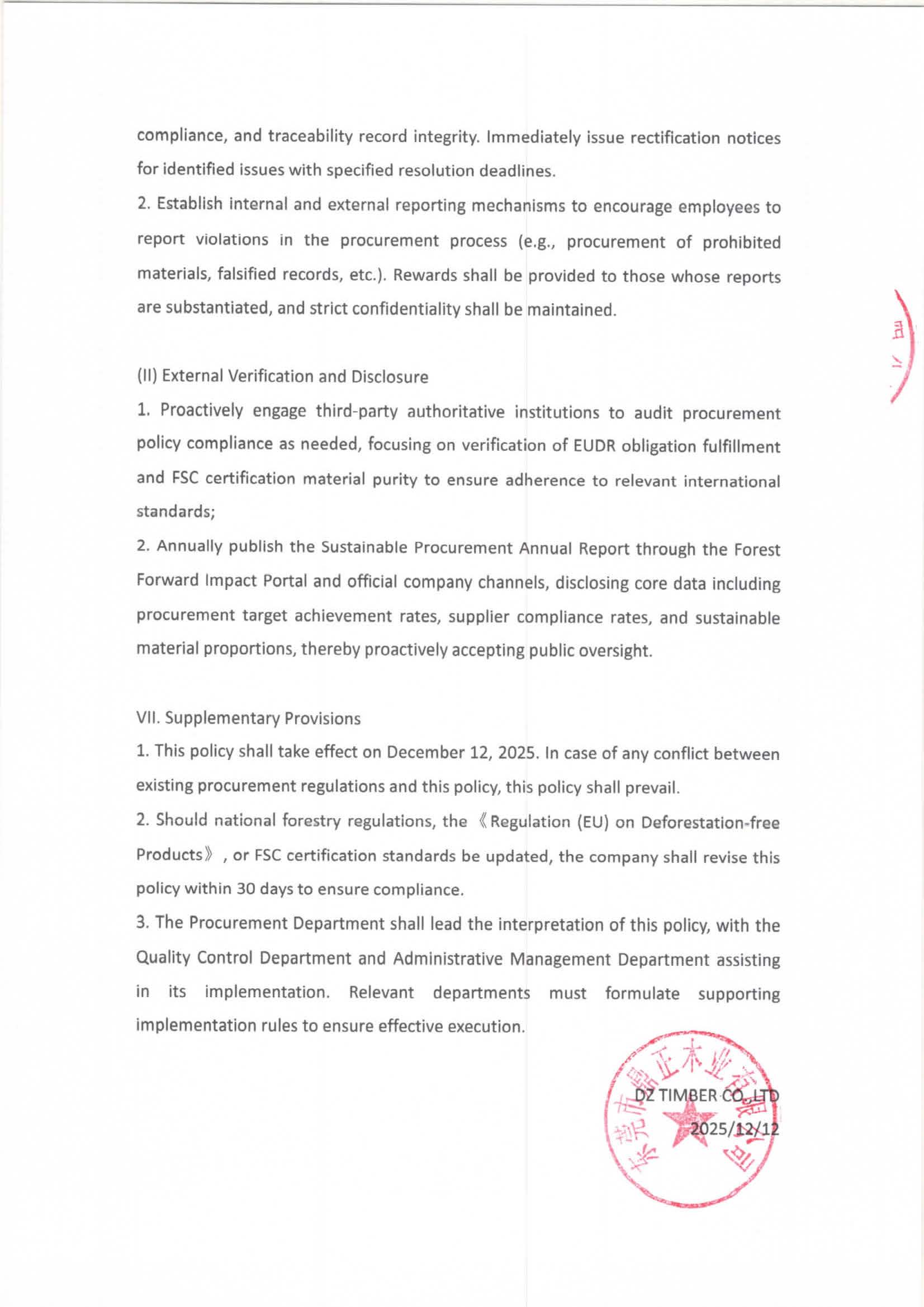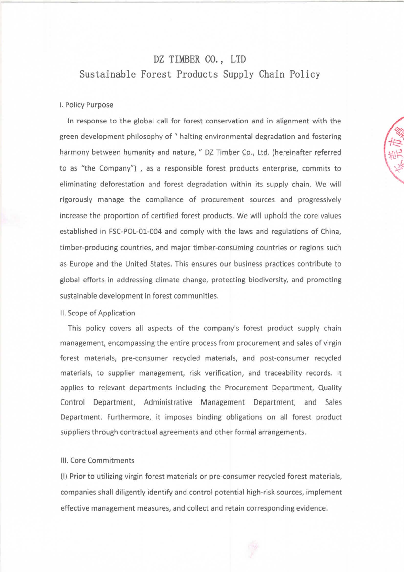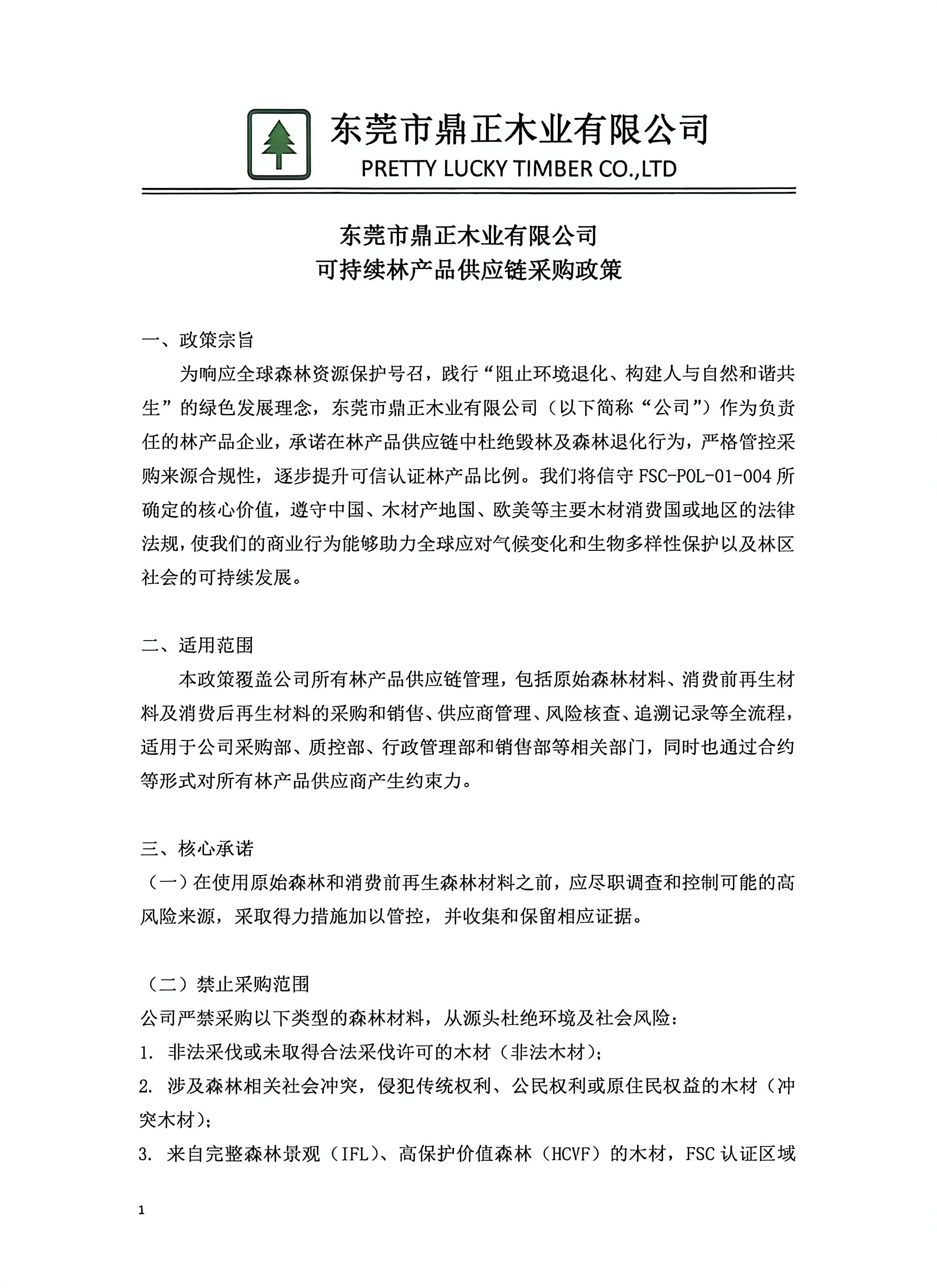 鼎正木业《可持续林产品供应链采购政策》