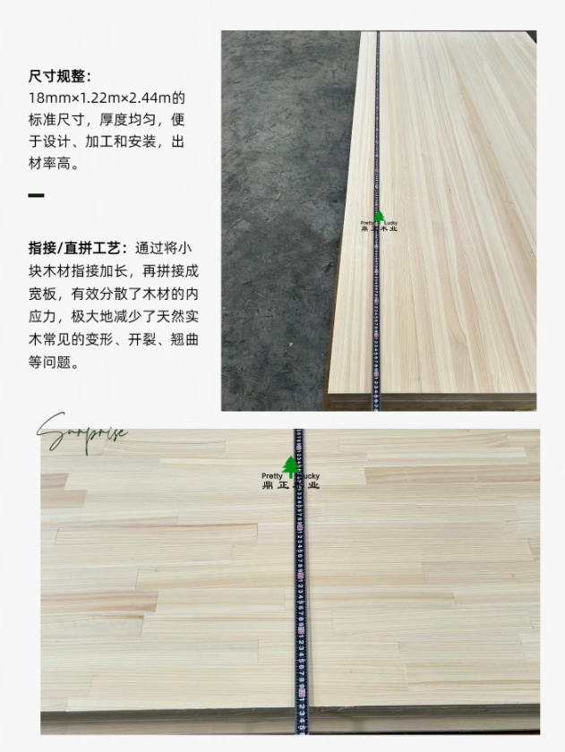 采用精密指接与直拼工艺,将木材应力完美分散。大幅面(1.22m×2.44m),超高稳定性,极大程度避免了实木常见的开裂变形。好材质,经得起时间与四季的考验。